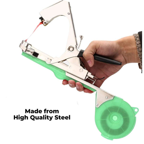 The Garden Tapener Machine is a great tool to have in any garden, greenhouse, or summer house. It quickly and easily ties plants to stakes or trellises without damaging them, making it a fast and efficient way to secure plants. Saving you DAYS worth of time were you to do it by hand. Plus, the adjustable tape circle fits all kinds of plants, so you can use it with a variety of different crops.